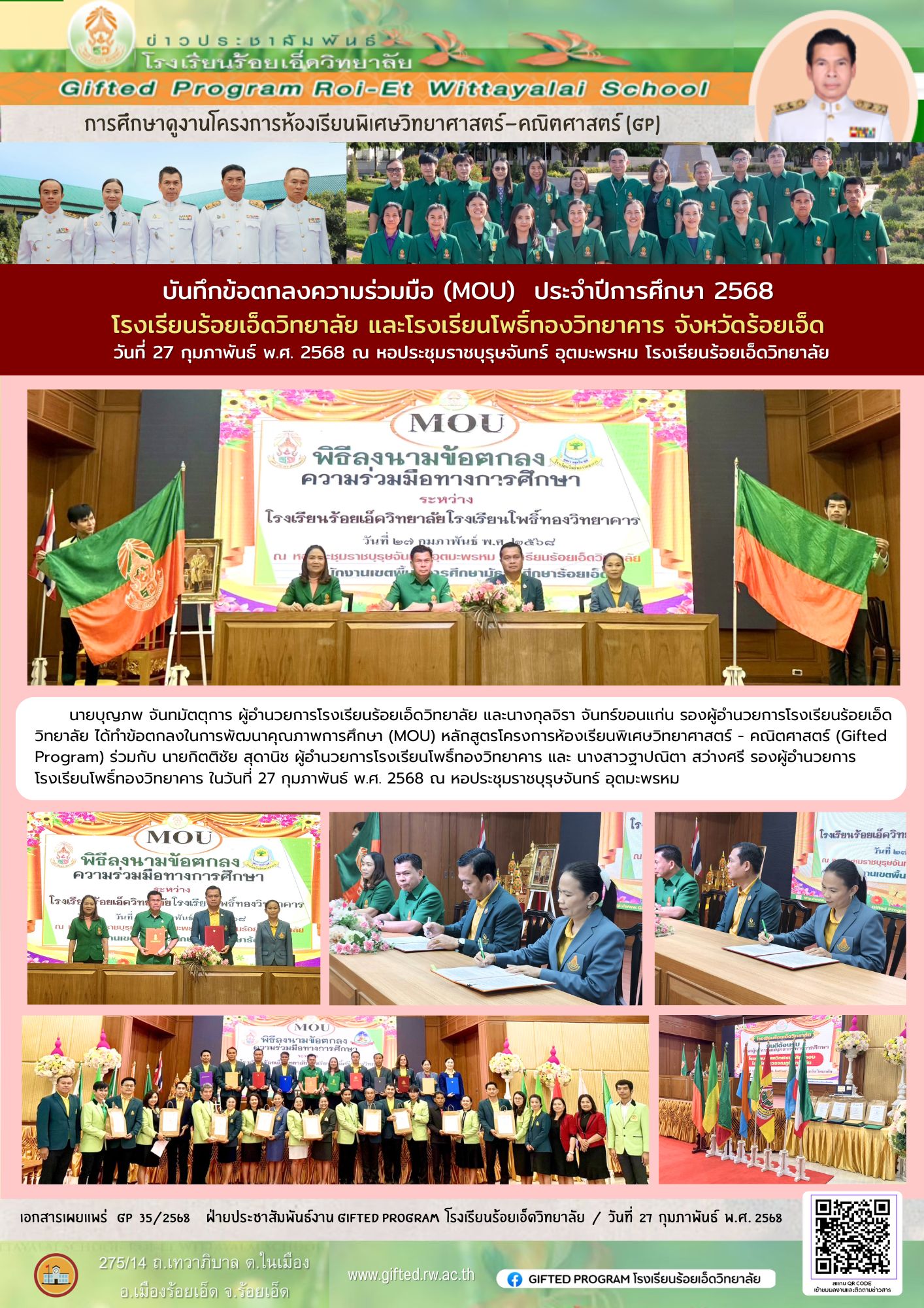 การทำ MOU และเข้าศึกษาดูงานข่าวประชาสัมพันธ์ โรงเรียนโพธิ์ทองวิทยาคาร ร่วมทำบันทึกข้อตกลงความร่วมมือทางวิชาการ (MOU) ประจำปีการศึกษา 2568 27 กุมภาพันธ์ 2025 ณัฐวุฒิ รุ่งวิสัย