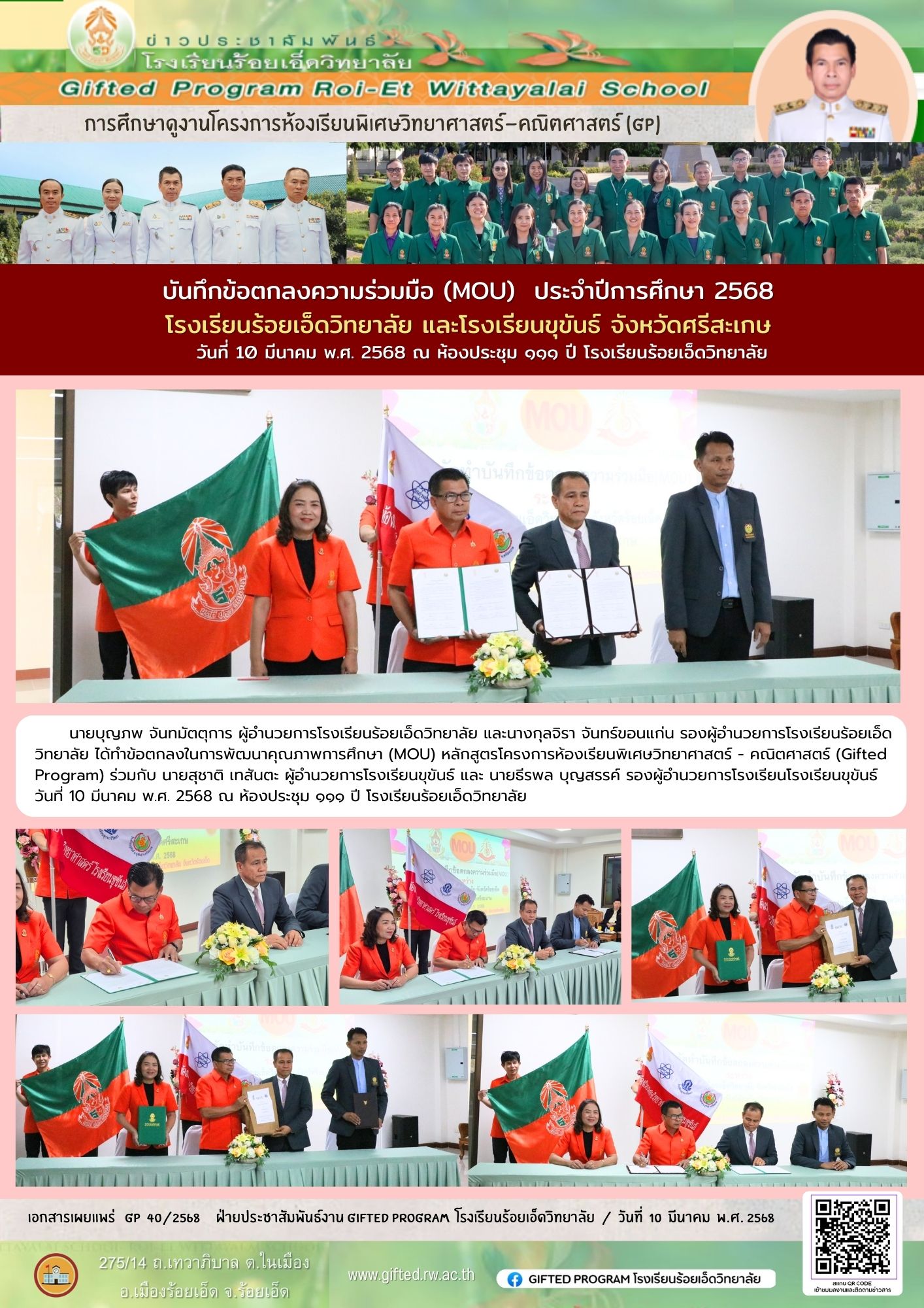 การทำ MOU และเข้าศึกษาดูงานข่าวประชาสัมพันธ์ โรงเรียนขุขันธ์ จังหวัดศรีสะเกษ ร่วมทำบันทึกข้อตกลงความร่วมมือทางวิชาการ (MOU) ประจำปีการศึกษา 2568 10 มีนาคม 2025 ณัฐวุฒิ รุ่งวิสัย