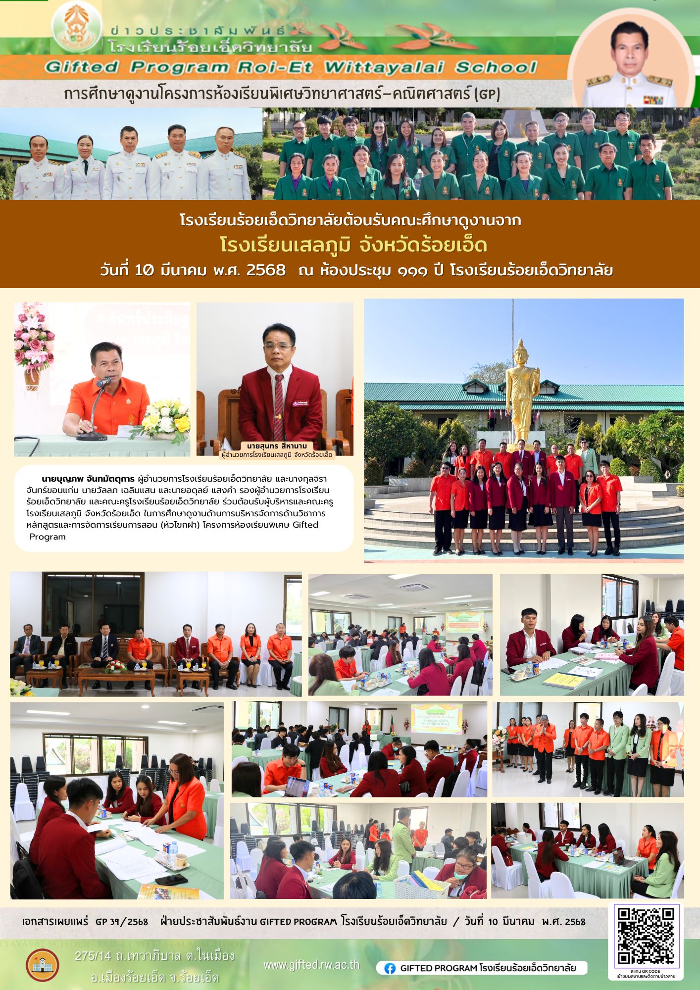 การทำ MOU และเข้าศึกษาดูงานข่าวประชาสัมพันธ์ โรงเรียนเสลภูมิ จังหวัดร้อยเอ็ด เข้าศึกษาดูงาน 10 มีนาคม 2025 ณัฐวุฒิ รุ่งวิสัย
